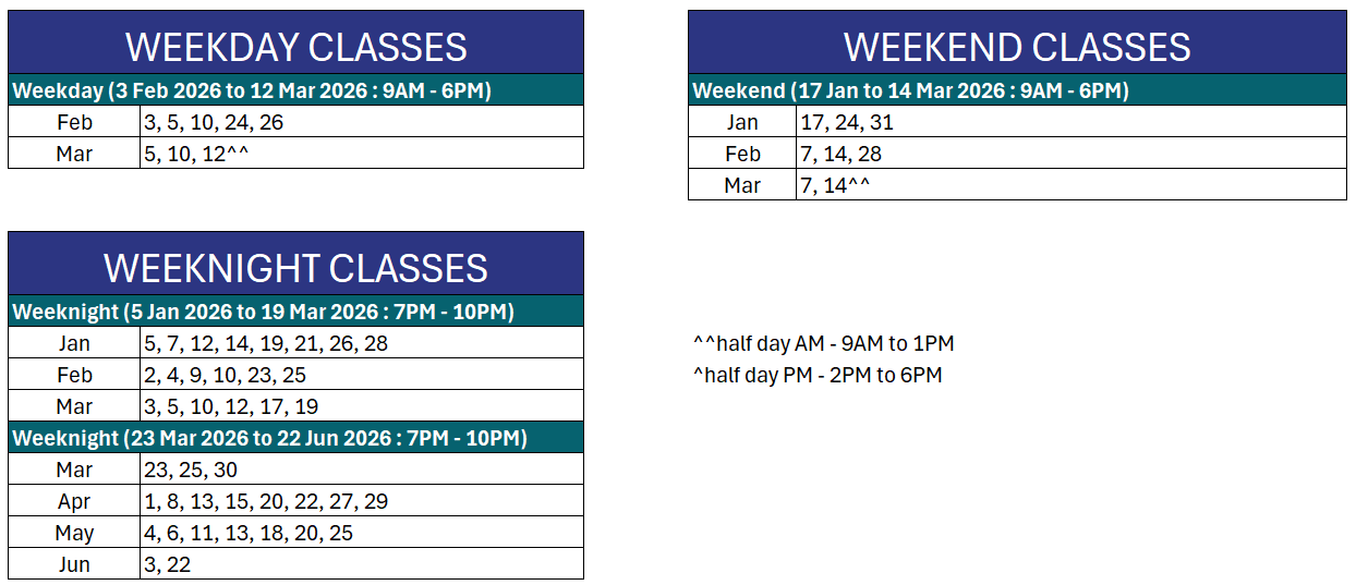 It is compulsory to meet the 75% attendance, complete and pass the assessment at the end of the training course to obtain the WSQ Statement of Attainment (SOA).
