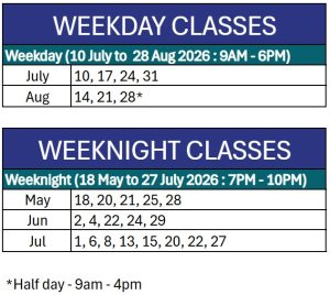 – No show on the scheduled date, a full course fee will be levied. For government-funded course, a full course fee before funding will be charged.