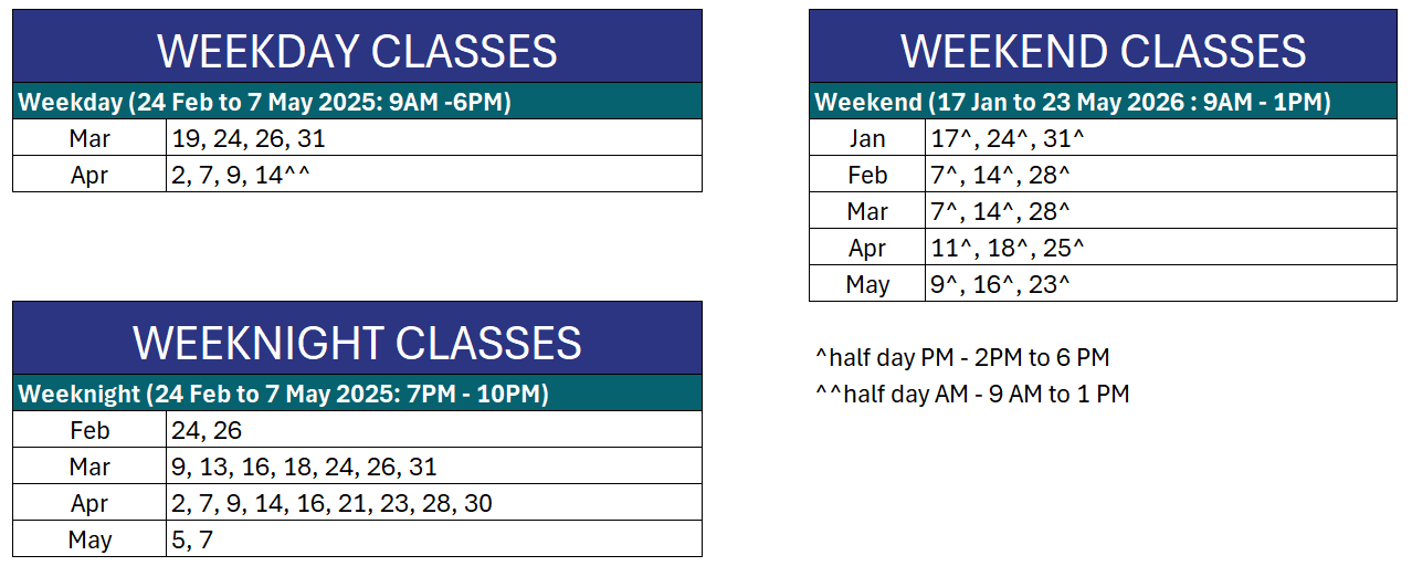 It is compulsory to meet the 75% attendance, complete and pass the assessment at the end of the training course to obtain the WSQ Statement of Attainment (SOA).