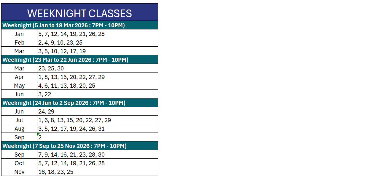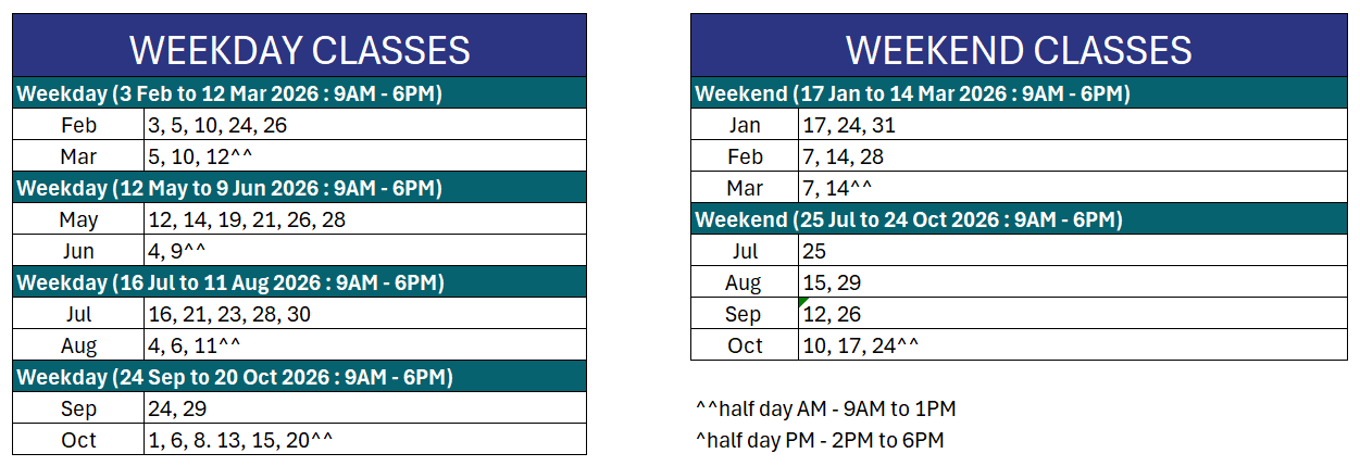 It is compulsory to meet the 75% attendance, complete and pass the assessment at the end of the training course to obtain the WSQ Statement of Attainment (SOA).